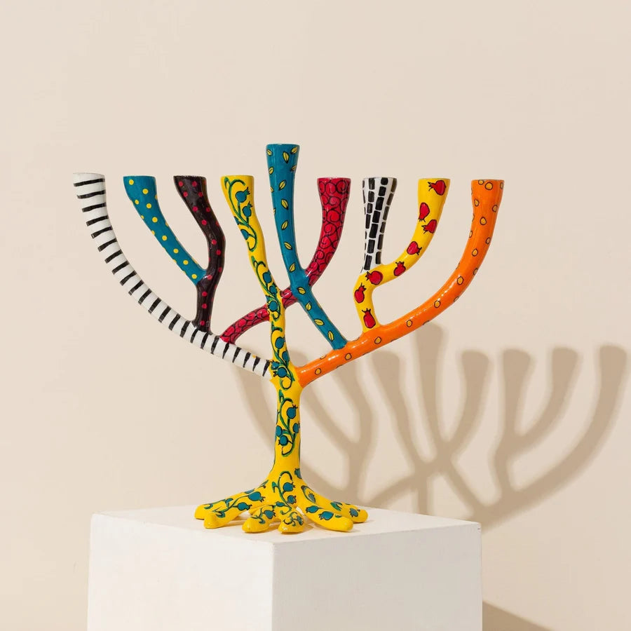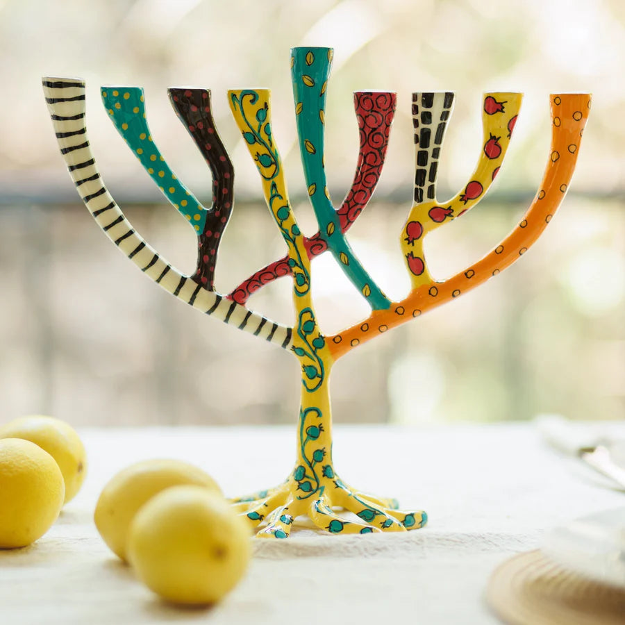 חנוכייה בעיצוב עץ החיים – דגם The Wild Tree | עבודת יד מאלומיניום וצביעת אמייל