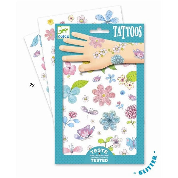 ערכת קעקועים בנושא פרחים, מכיל 2 סטים של דפי קעקועים.הקעקועים נבדקו דרמטולוגית.מתאימים לכל הגילאים