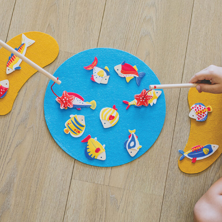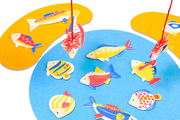 במשחק יש 12 דגים, 2 חכות ו 3 משטחי משחק מלבד ( ים ושתי יבשות), הדגים עשויים מעץ ובד לבד אשר מסתיר את המגנט כדי לאתגר את הילדים לדוג את הדג מבלי לראות את המגנט.