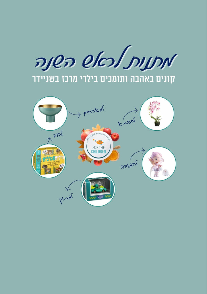 100% מהרווח מכל רכישת מוצר מוקדש לפעילות עמותת "ילדים שלנו" לשיפור רווחתם וקידום בריאותם של ילדי מרכז שניידר.