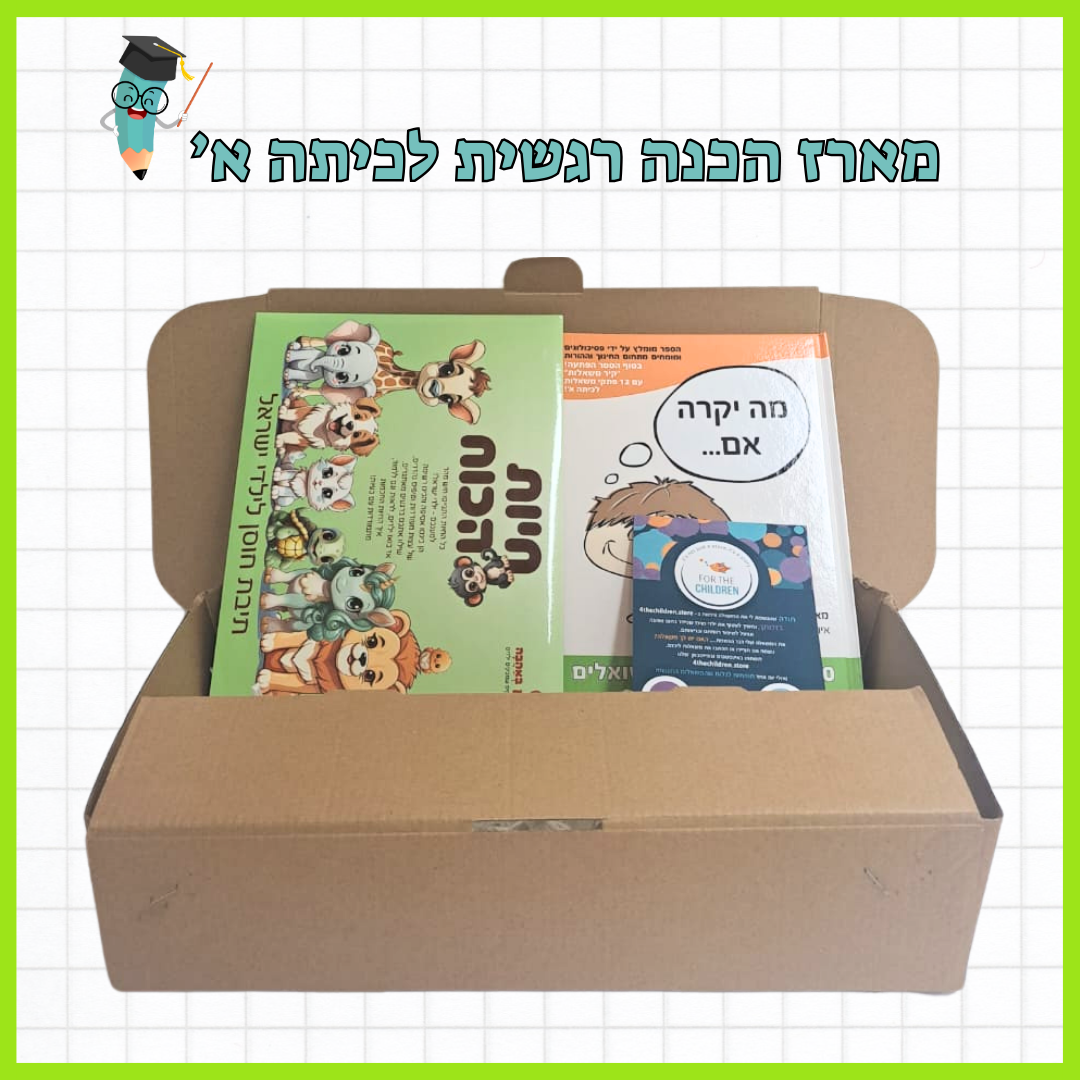 במארזים שלנו תמצאו ספרים ידידותיים להכנה לכיתה א' וליצירת תחושת מסוגלות, משחקים עם עצות ומסרים להגברת החוסן הנפשי וערכים שיעזרו לילד/ה להתחיל את השנה הלימודית הראשונה בצורה חיובית ואופטימית ביותר.
