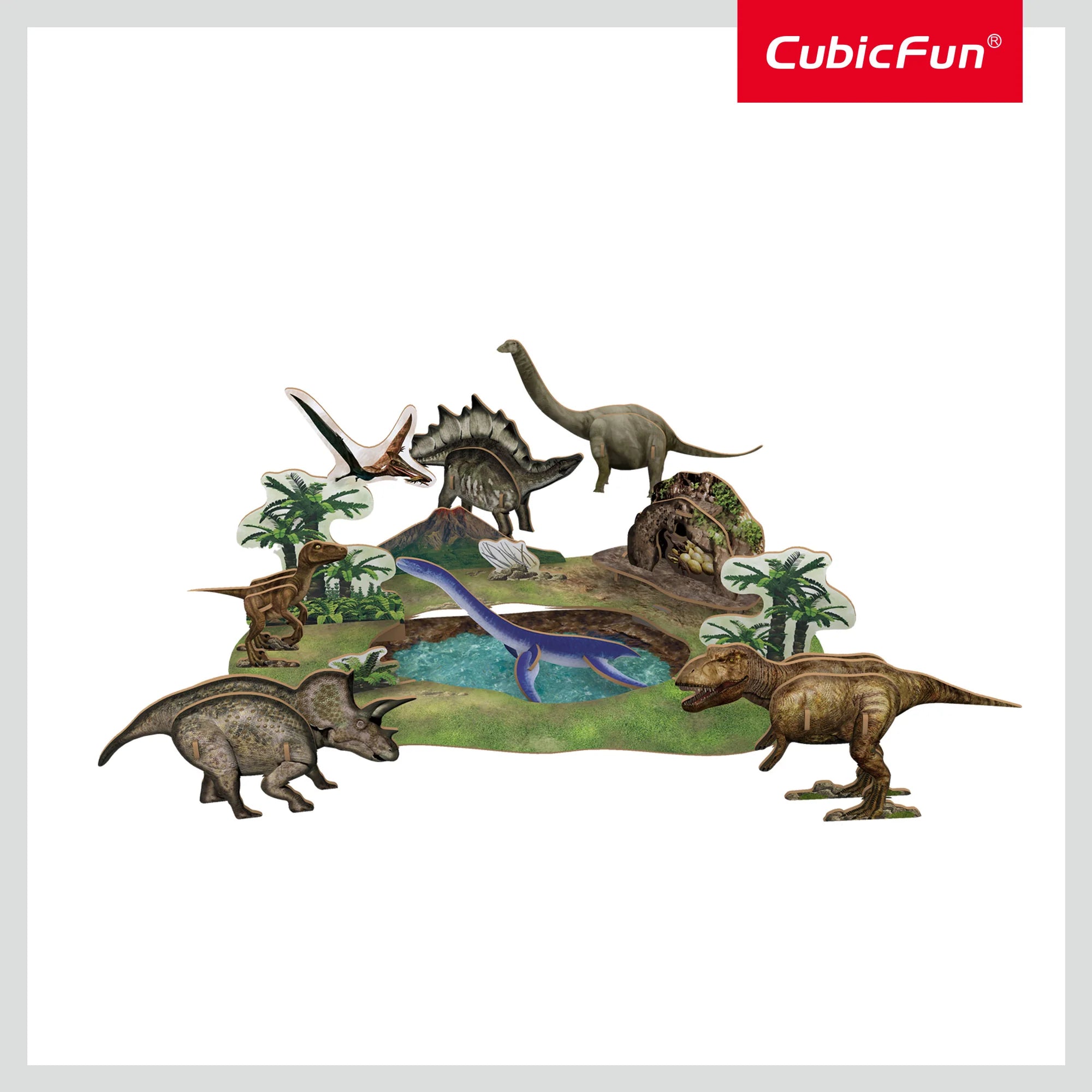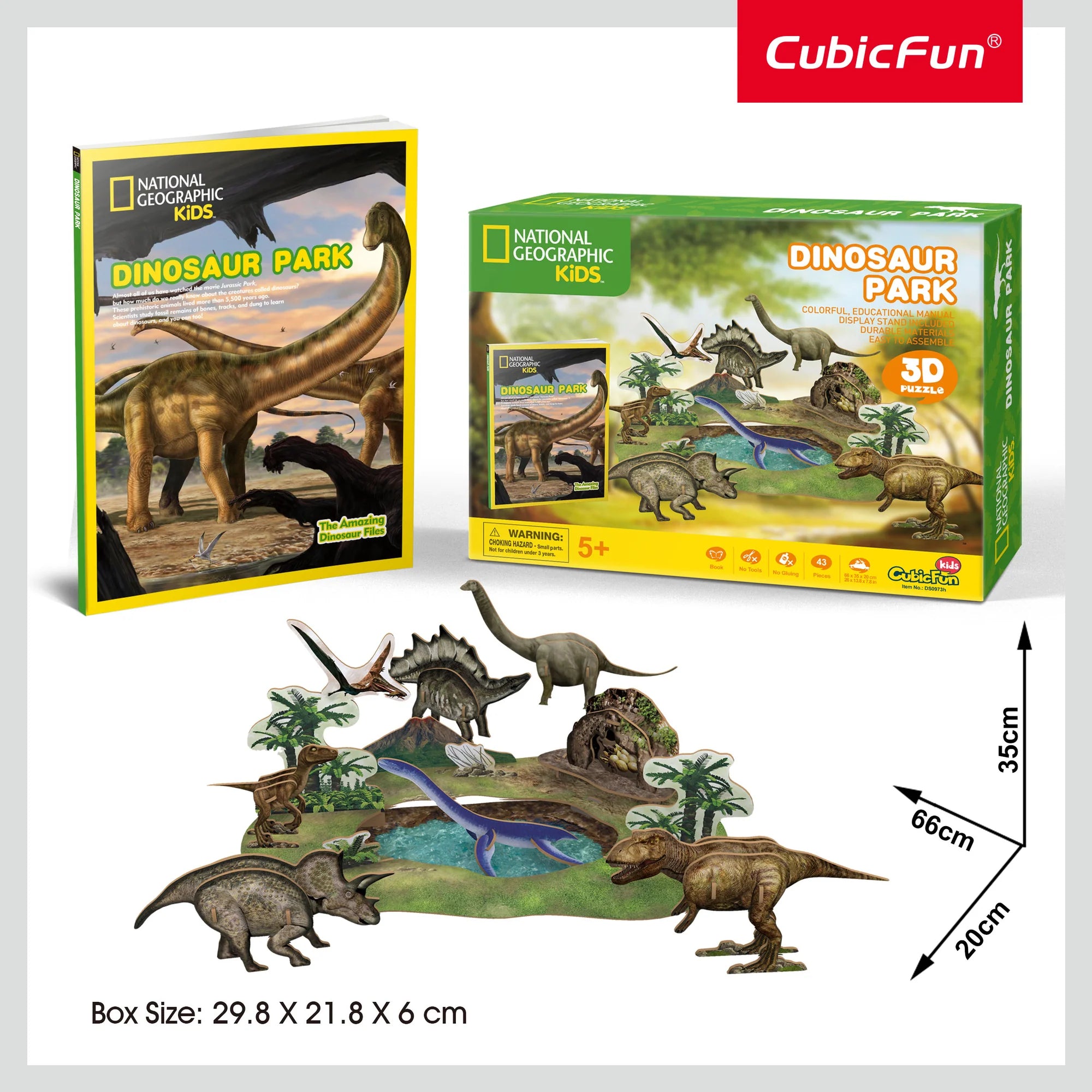 היישר מחברת CUBIC FUN סדרת נשיונאל ג'אוגרפיק,המעודדת להכיר מקומות חדשים ועולמות חדשים . ערכה זו עוסקת בעולם הדינוזאורים, בניית תלת מימד של פארק שלם עבור הדינוזאורים,ודינוזאורים למשחק, 43 חלקים עשויים קאפה, אין צורך בעזרים נוספים,הערכה אקולוגית וידידותית, מגיעה עם חוברת של 36 דפים עם תמונות והסברים על עולם הדינוזאורים. גודל המודל 66 *35*20 ס"מ. מתנה מיוחדת שתשאר לתמיד.הוראות הרכבה בעברית מצורפות.