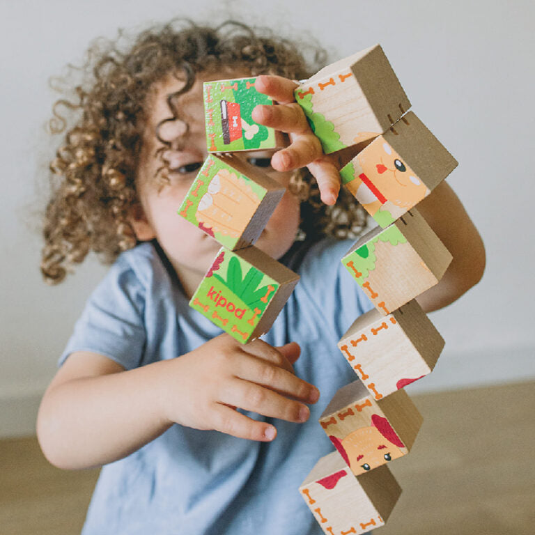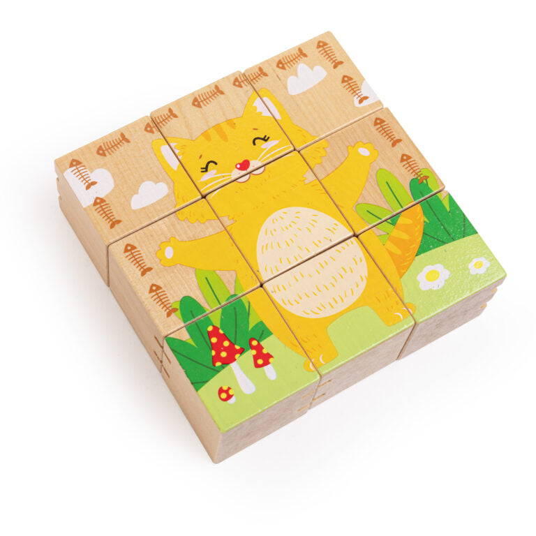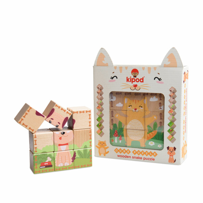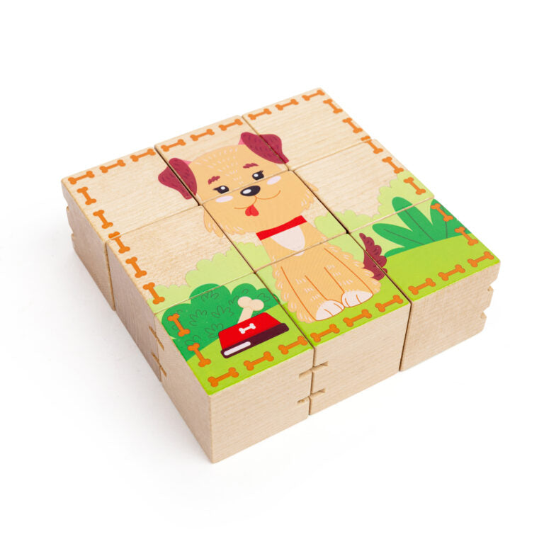 צעצוע הרכבה מהנה להתפתחות פעוטות, פאזל קוביות דו כיווני ( שני פאזלים) של קוביות עץ איכותיות המחוברות זו לזו.